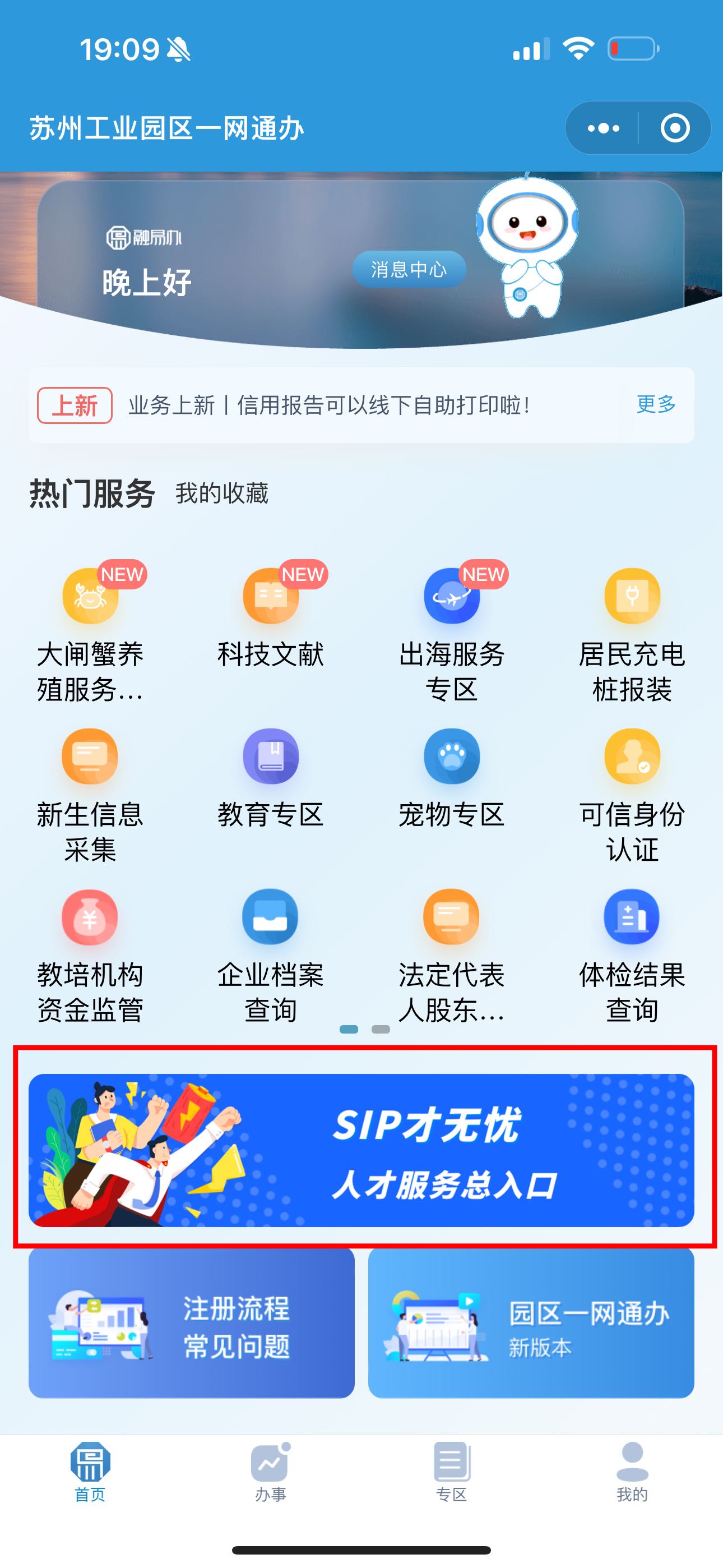 方式二:關(guān)注“蘇州工業(yè)園區(qū)發(fā)布”微信公眾號(hào),點(diǎn)擊下方“一網(wǎng)通辦”菜單欄,進(jìn)入后點(diǎn)擊“SIP才無憂”人才服務(wù)總?cè)肟凇?/p>
