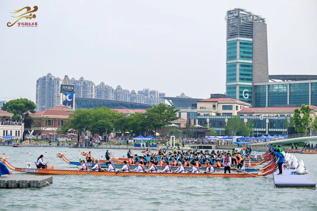 隨著比賽正式開始,金雞湖上百龍爭渡,龍舟隊(duì)員們齊心協(xié)力、揮槳如飛,向著終點(diǎn)全力沖刺。岸邊的觀眾也被熱烈的氛圍點(diǎn)燃,歡呼聲和加油聲一浪高過一浪。