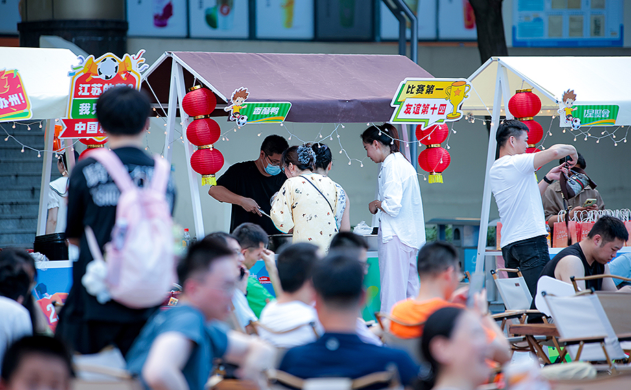 “近期,‘蘇超’聯(lián)賽持續(xù)火爆。我們以‘體育+美食+夜經(jīng)濟(jì)’為核心,融合球迷觀賽、地方美食、文化展示等內(nèi)容,豐富文體旅聯(lián)動(dòng)產(chǎn)品,希望以賽事帶動(dòng)消費(fèi),讓市民在觀賽之余享受美食、互動(dòng)的樂趣,提升看賽體驗(yàn)感。”現(xiàn)場相關(guān)負(fù)責(zé)人表示,未來,園區(qū)還將結(jié)合更多體育IP,推出類似活動(dòng),持續(xù)激活夜間經(jīng)濟(jì)活力。