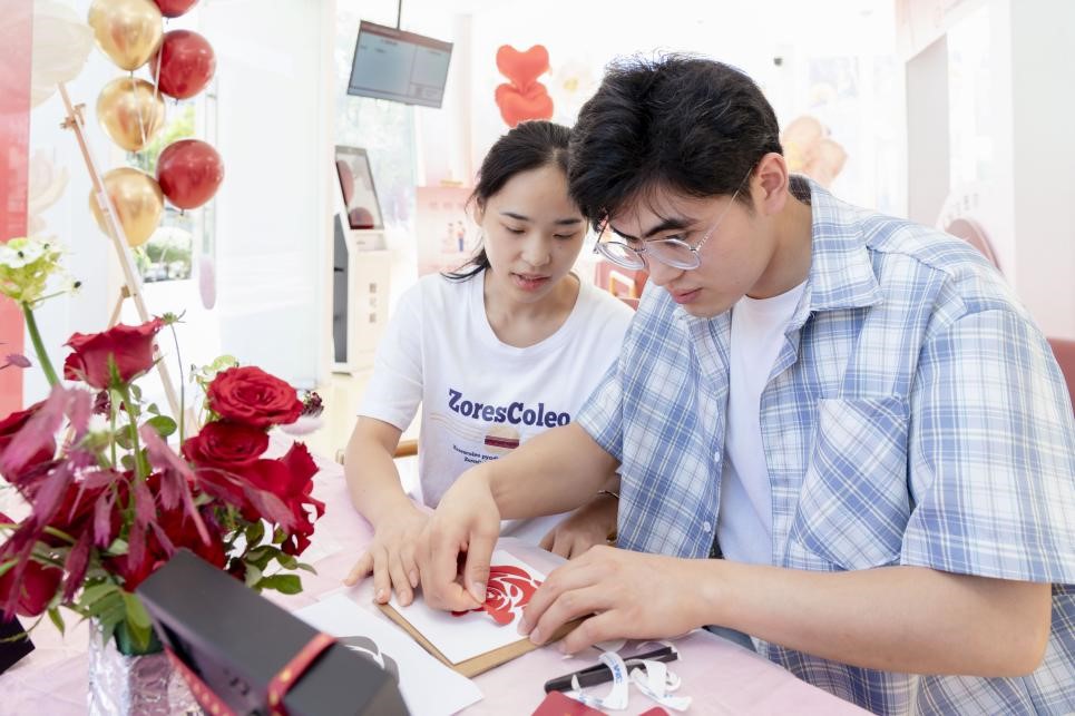 園區兩處婚姻登記載體通過設置各具特色的互動攤位,創新婚姻登記服務,融入充滿文化內涵和情感溫度的幸福體驗項目,為新人朋友們的七夕紀念日記錄具有特別意義的甜蜜時刻。“我們設計了三個互動活動,希望新人們在園區婚姻登記處完成新婚登記之后,開啟甜甜蜜蜜的新生活。”袁翀說道。