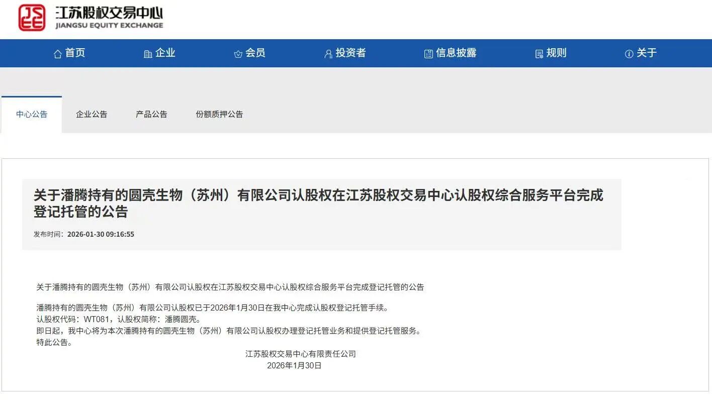 1月30日,在江蘇股權交易中心指導下,蘇州工業園區科技創新委員會聯合蘇州銀行工業園區支行、蘇州新建元數字科技有限公司及錦天城(蘇州)律師事務所成功推動全國首單“數據知識產權+認股權”業務正式落地,幫助圓殼生物(蘇州)有限公司完成認股權登記托管手續,為科創企業數據資產價值轉化開辟全新路徑。