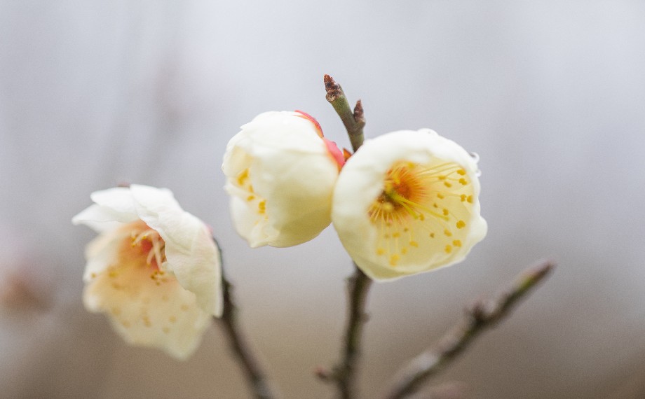 梅,素有“五福花”之雅稱,五片花瓣對應“福祿壽喜財”,每一縷梅香里都裹挾著歲月的美好期許。花瓣舒展,嫩黃花蕊點綴其間,柔光拂過,光影流轉,風動枝搖,滿樹爛漫,便是初春最溫柔的景致。