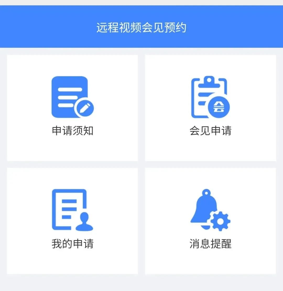 第三步:在“遠(yuǎn)程視頻會(huì)見(jiàn)預(yù)約”頁(yè)面,點(diǎn)擊“申請(qǐng)須知”,了解遠(yuǎn)程視頻會(huì)見(jiàn)申請(qǐng)條件、注意事項(xiàng)等。