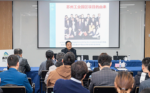 A seminar was held on the same day when the participants from the School of Economics and Management of Tsinghua University, the Suzhou Dushu Lake Sci-Edu Innovation District Bureau for Collaborative Development of Higher Education Institutions and several companies discussed ways of integrating talent cultivation and industrial innovation.