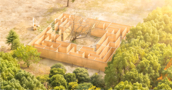 Artist Kang Junyan’s straw mat maze is built around a tree, with its paths embedded with cultural imprints from three ancient periods.