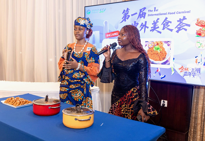 The atmosphere grew especially lively as a group of international students shared flavors from their home countries. Among them, Nigerian students Eunice and Comfort, dressed in traditional attire, introduced their native fried rice with infectious enthusiasm.