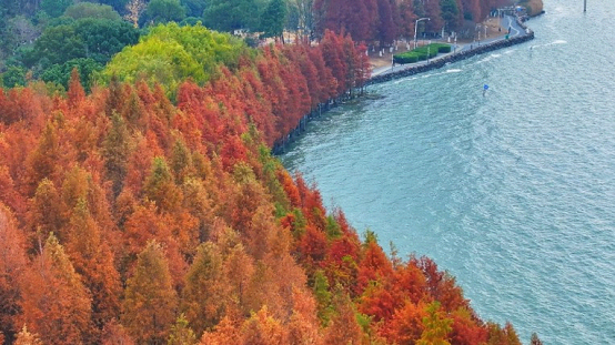 As the cool breeze whispers, a splendid tapestry painted by red maples, golden ginkgos and russet-red dawn redwoods gradually unfolds across SIP. Between modern architecture and serene lakeshores, the park reveals a rich, poetic landscape of the season.