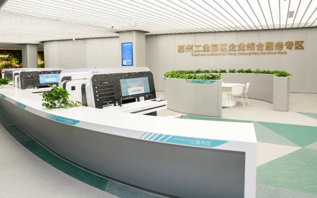 王女士的辦事體驗只是園區(qū)“三服務”行動的一個縮影。面對復雜業(yè)務與個性化需求,園區(qū)打造以市民服務中心為核心、多個企業(yè)綜合服務驛站為觸角的“1+N”服務網絡。其中,在市民服務中心整合各類涉企服務,推出“企業(yè)綜合服務專區(qū)”,首創(chuàng)“2355”服務模式,創(chuàng)新“出生即享惠企服務包”、多部門專家協(xié)作服務模式(MDT)等舉措,最大程度實現“進一門辦理”。專區(qū)啟用以來,累計提供服務8.2萬次,智辦比例達73%。在基層,結合產業(yè)特色,積極推動政務服務、企業(yè)服務、產業(yè)服務融合創(chuàng)新,推出生物醫(yī)藥產業(yè)園、陽澄數谷等“企業(yè)綜合服務驛站”,辦理的企業(yè)登記業(yè)務占園區(qū)同類業(yè)務總量的56%,有效實現企業(yè)辦事“就近辦、快捷辦”。