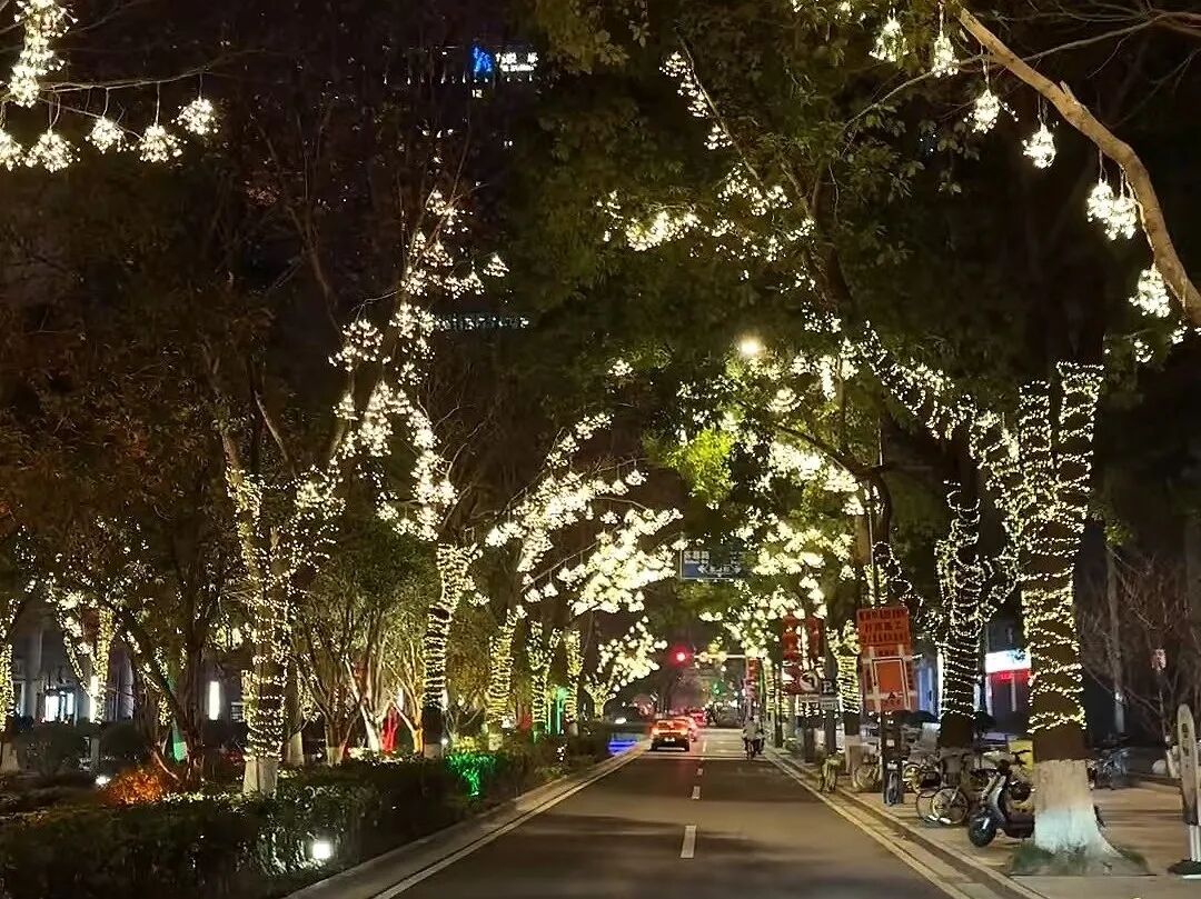 在主要道路和景觀節(jié)點(diǎn),紅燈籠、中國(guó)結(jié)與煙花燈飾已懸掛到位。蘇州大道等主干道光影交織,現(xiàn)代大道、星湖街等道路中央帶和非機(jī)動(dòng)車道布置草花,選用紫羅蘭、羽衣甘藍(lán)等冬季花卉,營(yíng)造出紅火溫暖的節(jié)日氛圍。