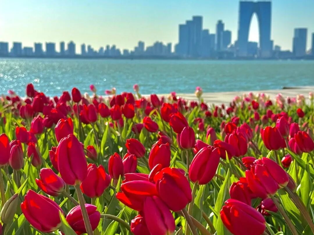 在金雞湖大橋、人行棧橋等重點(diǎn)區(qū)域布置馬鞍式掛花,飛翔雕塑周邊擺放郁金香。針對(duì)不同花卉制定專項(xiàng)養(yǎng)護(hù)計(jì)劃,安排專人每日巡查,確保節(jié)日期間花開繁盛,為市民提供最佳觀賞體驗(yàn)。