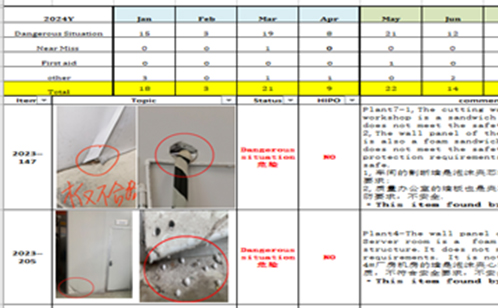 另一方面,公司鼓勵(lì)員工爭做安全“吹哨人”,只要在日常工作中發(fā)現(xiàn)安全隱患,即可第一時(shí)間拍照發(fā)送至公司微信群,由安全管理團(tuán)隊(duì)每日對員工提報(bào)隱患進(jìn)行篩選和確認(rèn),每周匯總形成《安全隱患排查追蹤落實(shí)表》,公示至安全角,接受全員監(jiān)督,大大提高了隱患發(fā)現(xiàn)的效率和準(zhǔn)確性。