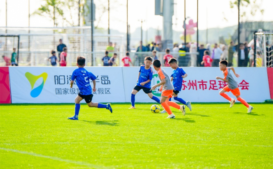 如果說新建元國際網球中心是“優雅擔當”,那么不遠處的陽澄湖半島足球公園則稱得上“活力引擎”。公園坐擁5片國內最高標準的濱水天然草足球場,按照“世界眼光、國際標準、蘇州特色、園區品質”打造,球場評分均達到了FIFA國際足聯90分以上的評分。