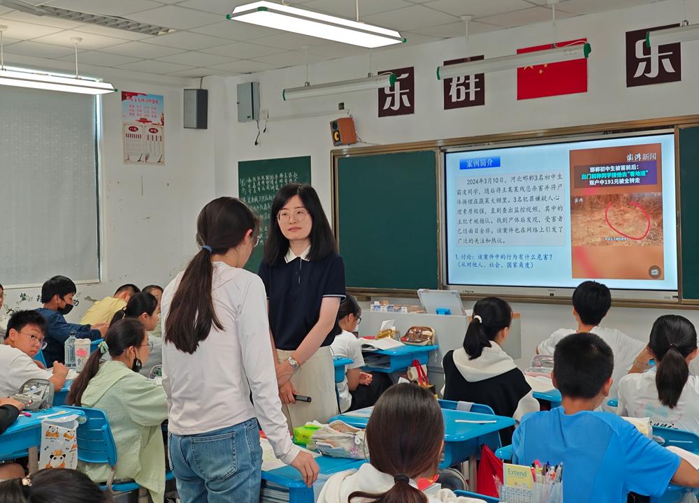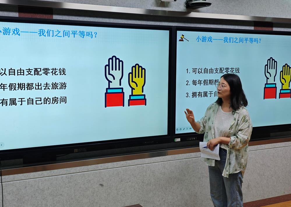 星海實驗初級中學的陳燕秋老師以“嚴于律己:守住行為邊界做自律好少年”為總議題展開,通過設置“年齡小”=“免罰牌”?“小錯”釀成“大罪”?“自縛”還是“自由”?等三個問題,帶領學生探尋法律責任的真相,認清不良行為的演變陷阱,體會自律帶來真正的自由。