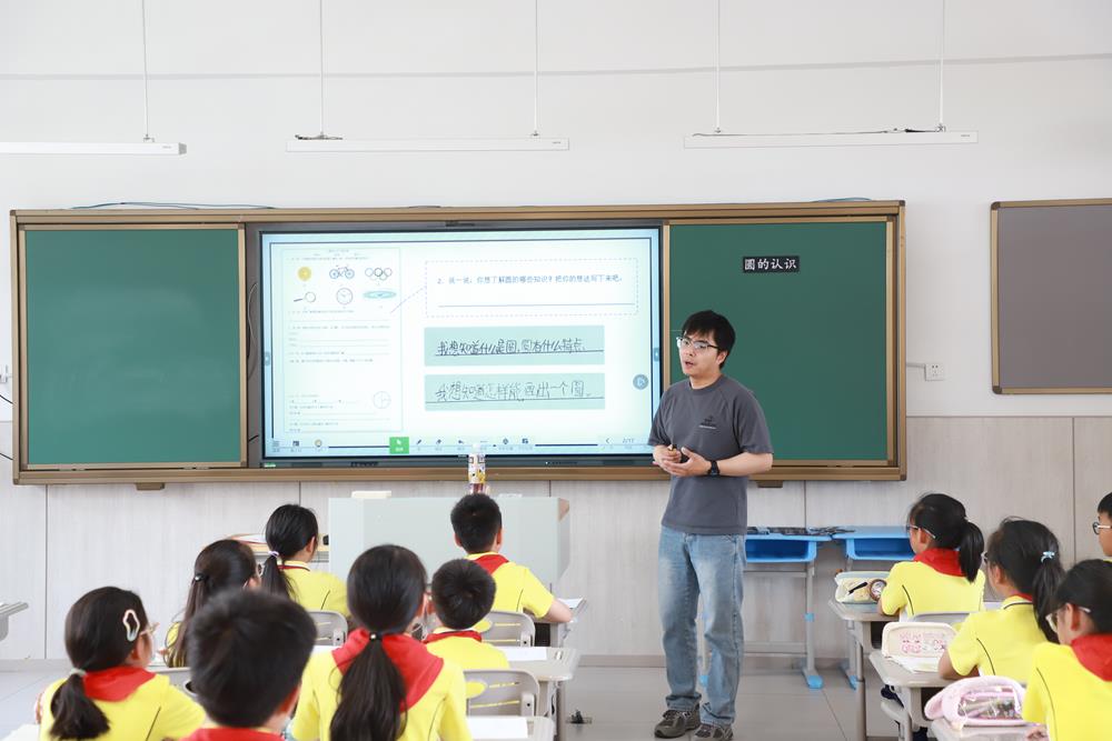 婁葑實驗小學吳昊老師執教的《圓的認識》一課,以學生前學經驗為起點,圍繞圓的本質特征展開探究。課程通過三個層次遞進:首先引導學生對比圓與多邊形的異同,建立曲線圖形認知;其次以圓規畫圓為切入點,通過試錯、示范、實踐掌握“定點、定長、旋轉”的核心原理;繼而組織折紙測量活動驗證圓的對稱性、半徑直徑關系等重要性質,培養實證意識;最后拓展生活化畫圓方法和數學文化滲透。整節課貫穿操作實踐與思維探究,構建起完整的圓概念認知體系。