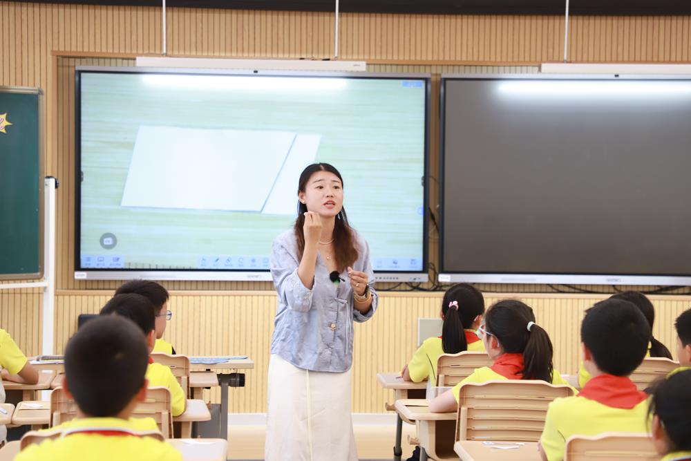 文萃小學的周佳琪老師在《平行四邊形的面積》一課中,從回顧長方形面積公式的推導過程入手,揭示了面積的本質概念。她引導學生勇于猜想平行四邊形的面積,并通過“數方格”的活動,讓學生親自動手數一數平行四邊形的面積,逐步發現并驗證結論。這一過程不僅加深了學生對平行四邊形面積公式推導的理解,還強調了轉化思想在數學學習中的重要性。