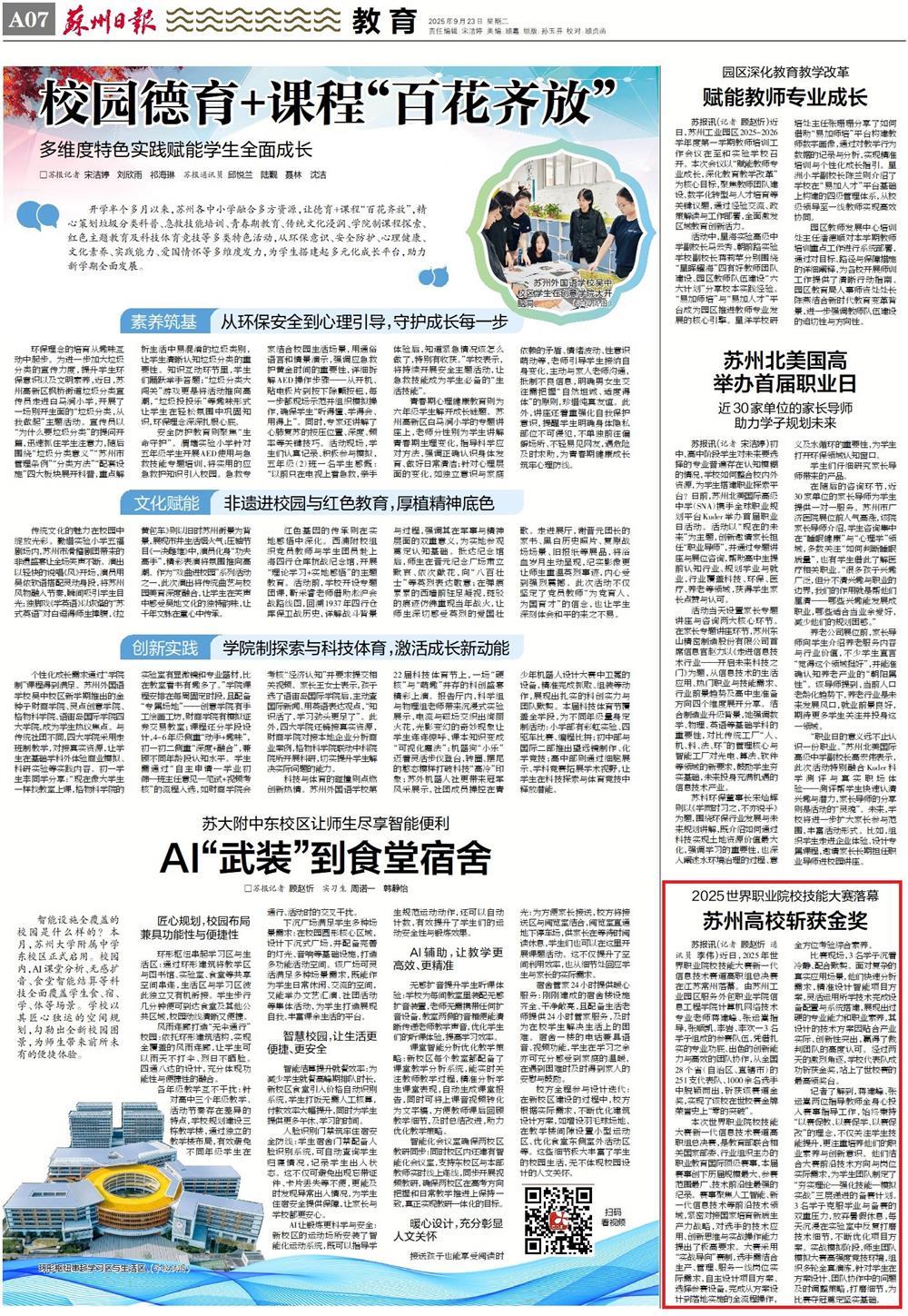 【蘇州日報】 2025世界職業院校技能大賽落幕 蘇州高校斬獲金獎